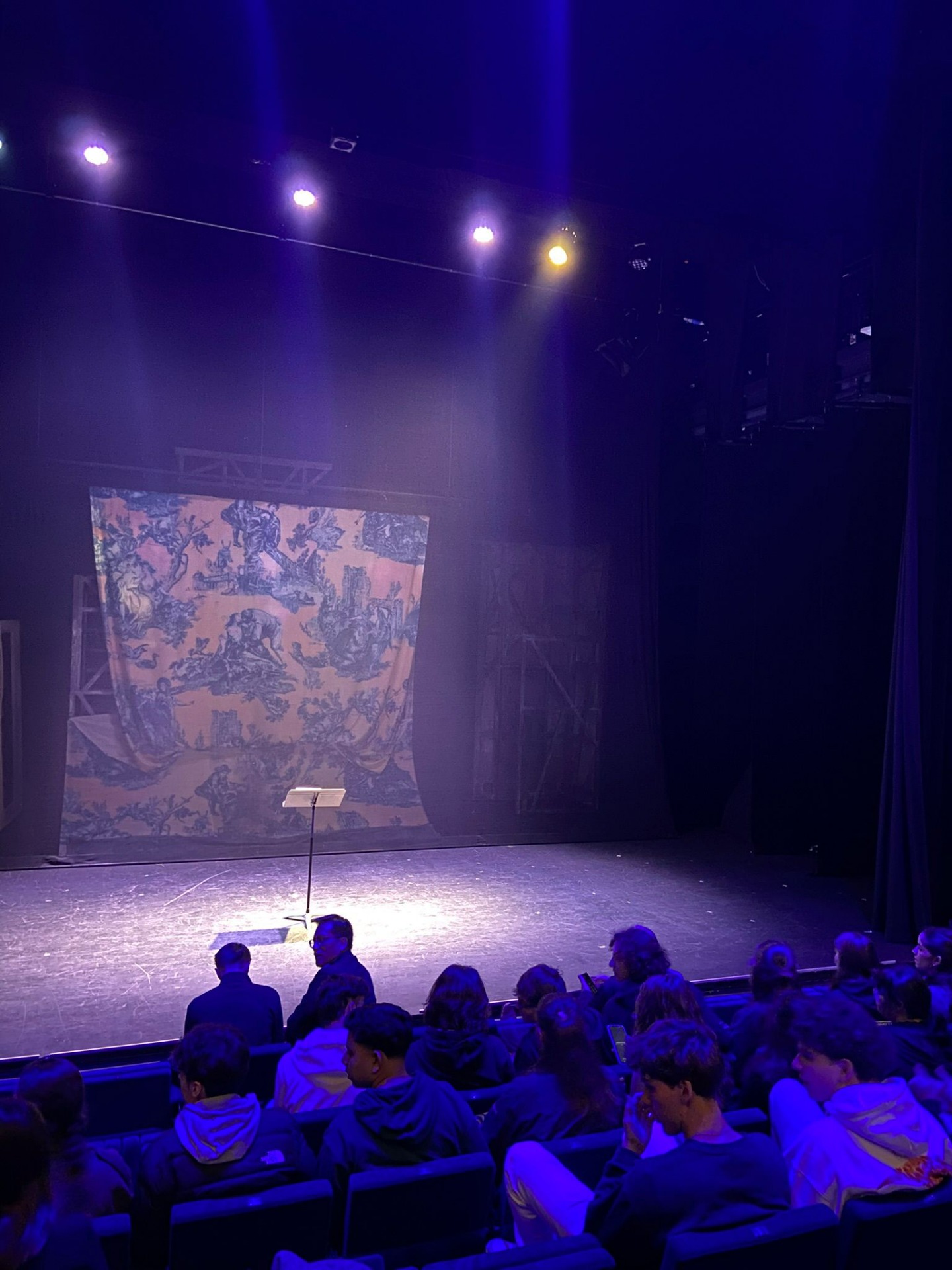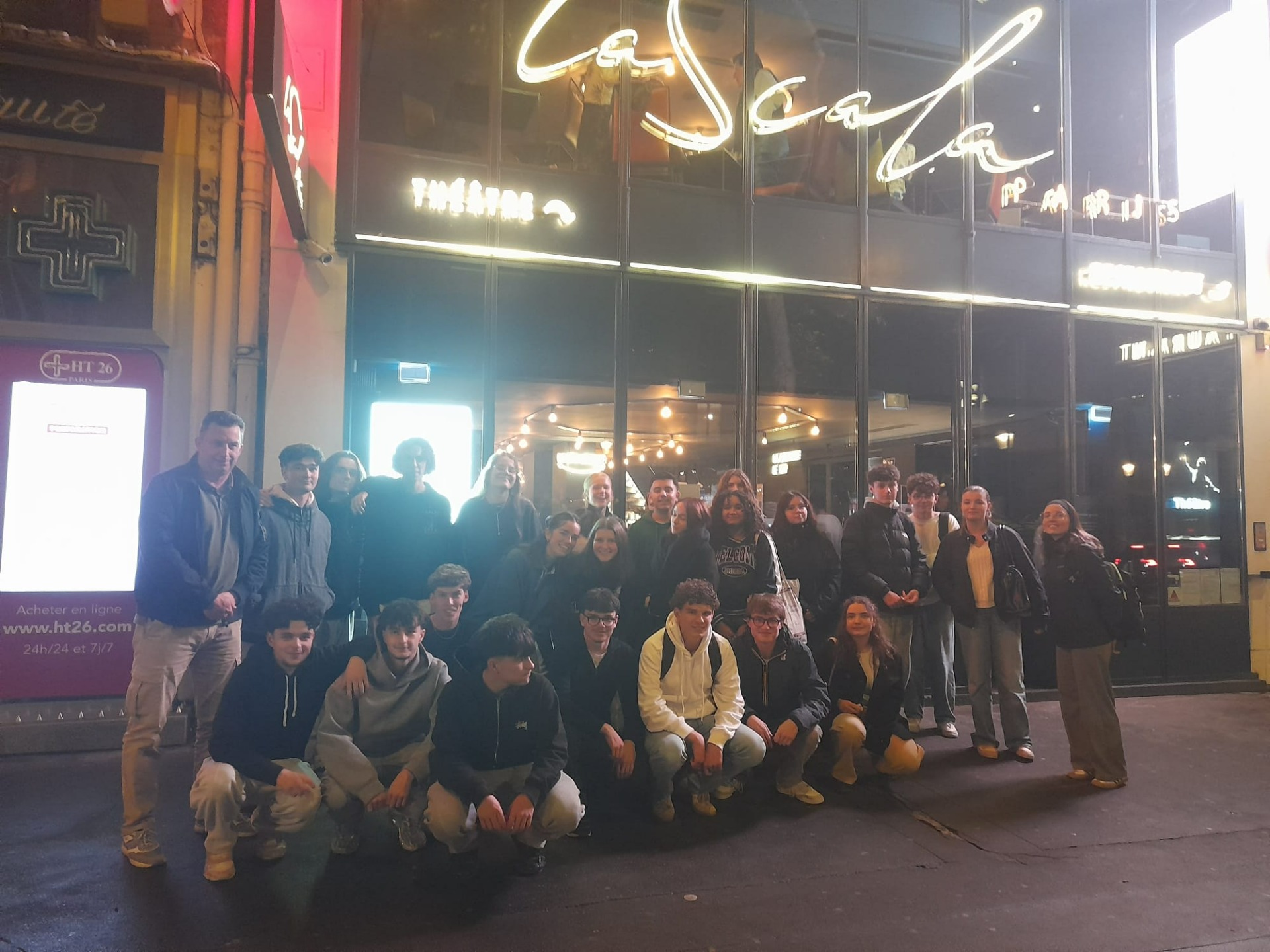 Nous sommes partis de Concarneau en bus à 8h, pour arriver à 17h. Le midi, nous avons pu tester des rations militaires qui sont très nourrissantes, mais sans saveurs. Une fois bien installés à l'hôtel, nous avons pris le métro vers La Scala (13 Bd de Strasbourg), un théâtre renommé. On a pu assister à une lecture de la pièce Le Professeur qui retrace les derniers jours de Samuel Paty, suivie d'un échange avec la metteuse en scène de la pièce. Nous avons ensuite eu la chance de manger le repas dans le restaurant du théâtre, c'était délicieux ! Nous sommes ensuite retournés à l'hôtel en métro.
